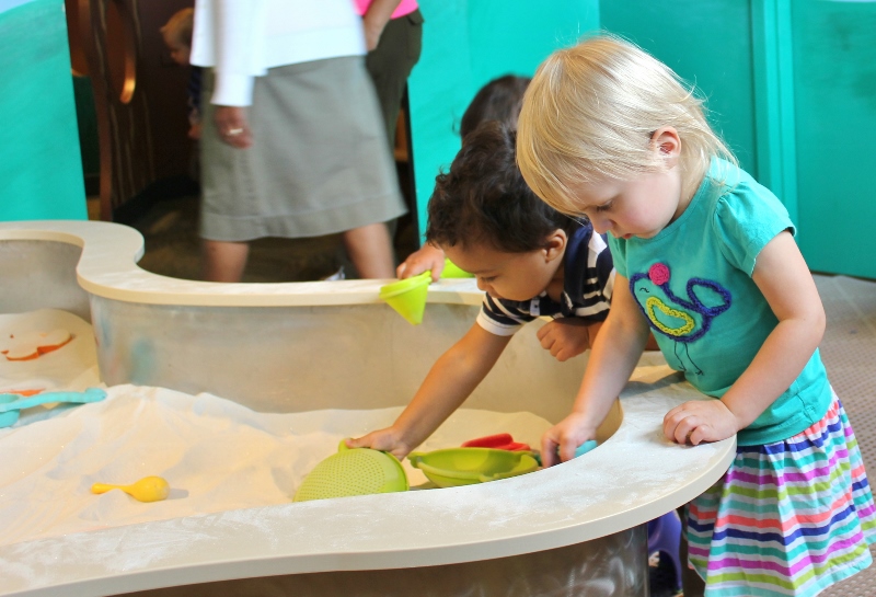 We started in the tots room, for kids under three.  Ellie loved the sand box!
