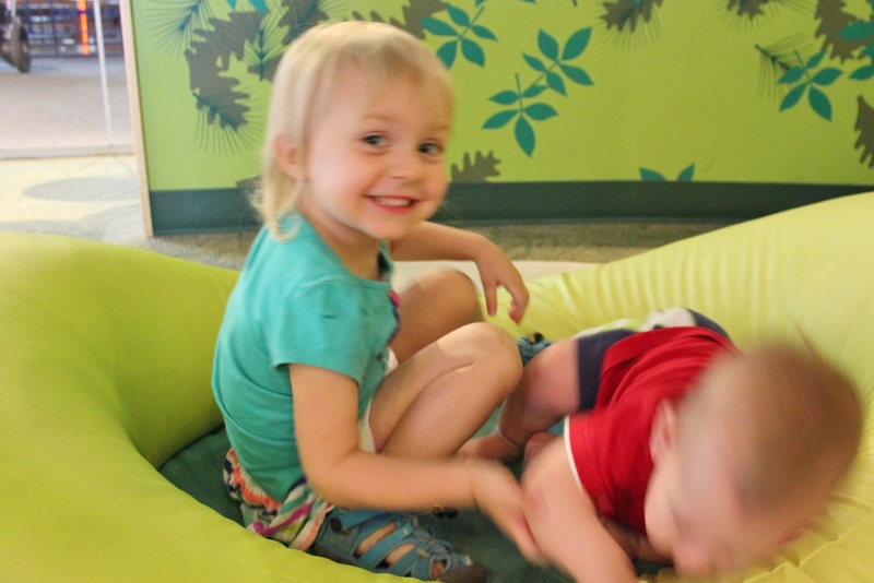 029 (800x545)Then we moved on over to the mountain/forest section in the tots room, where Ellie and Mark rode in a “boat” together. (Excuse the blurriness – fast picture taking while trying to keep Mark from falling over wasn’t the easiest! :))