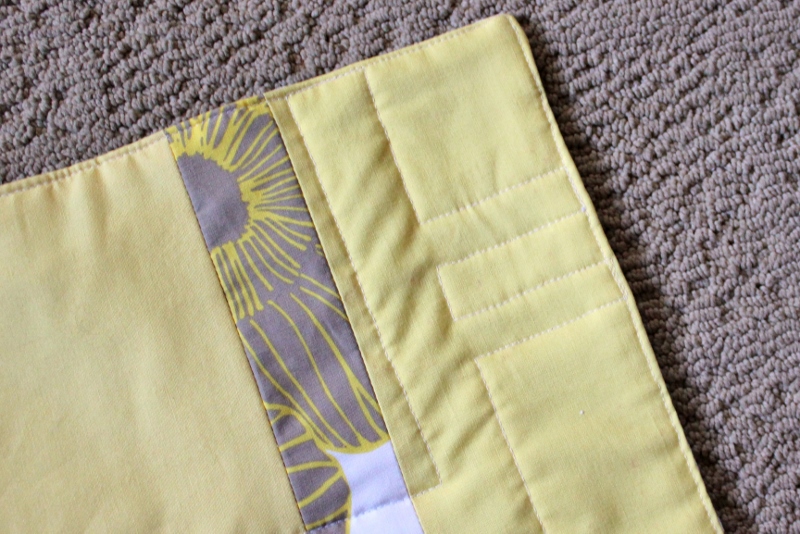 I quilted around the outside of the yellow strips. I like the detail it created on the back too.