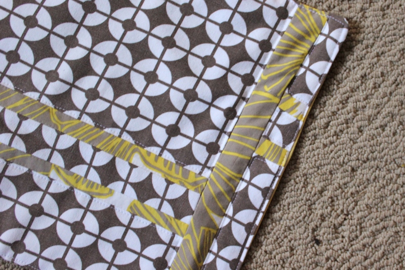 I also added the solid yellow bottom so that I could use that piece of patterned fabric for the changing pad. I like the surprise pop of yellow down there!