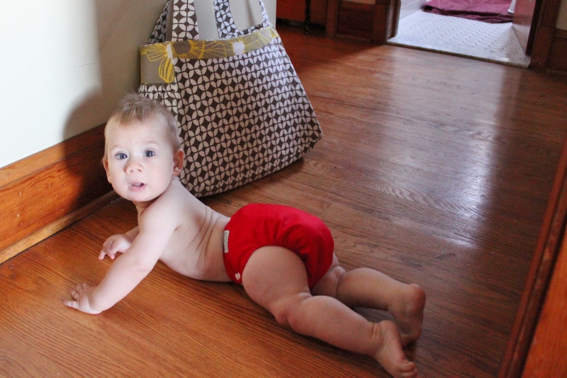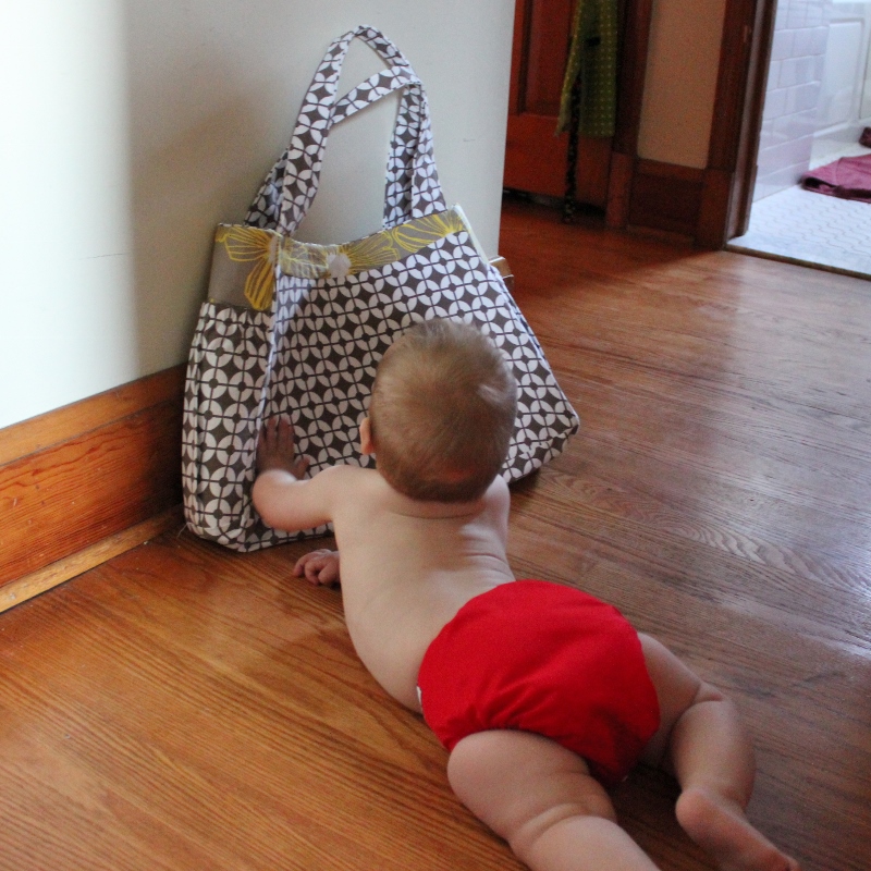 As is my tradition with making diaper bags (as you can see in Meggan’s, Rachel’s, and Leah’s bags), I also included a baby in the photo shoot. Mark doesn’t like to sit so I had to con him into being in the picture (rather, I just put the bag where he was!).