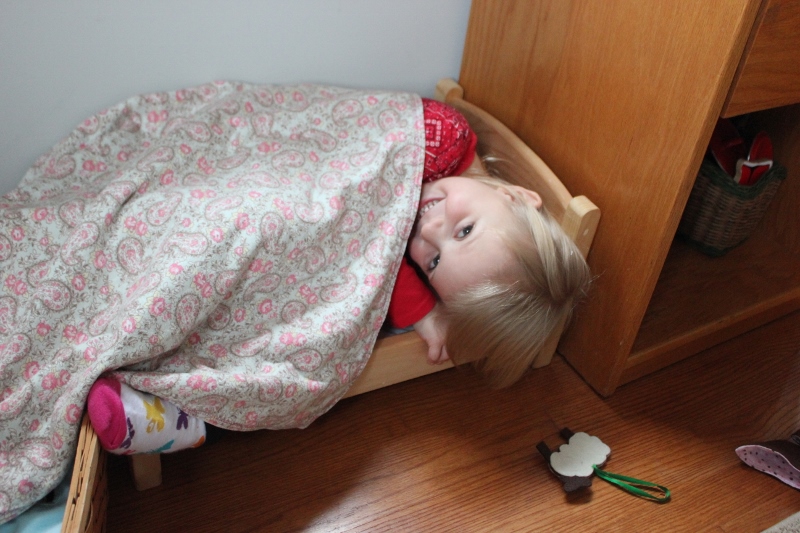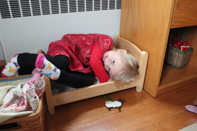 If Mark gets to sleep in the doll bed, Ellie should too! 🙂
