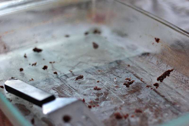 the amounts in parentheses are for a 1/3 batch, when you’re really craving brownies but you don’t want to make a whole pan and you’re also almost out of cocoa powder. Yes, this was me a while ago! 🙂