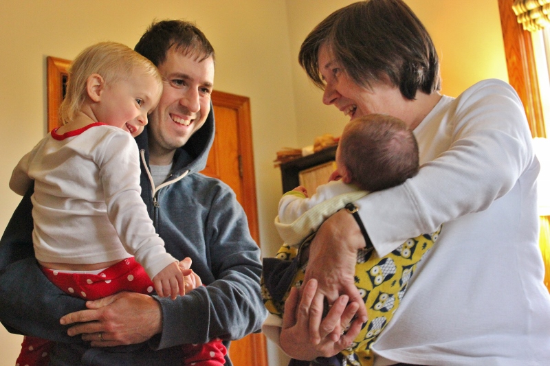 The birth center has a rule that the mama and baby have to stay for at least four hours after the end of labor and should not leave until bothy baby and mama have eaten and cleaned up. (Well, the cleaned-up part is mostly for the mama. You didn’t need a bath!) When Ellie was born, it took us more like 7 hours to feel like we were ready to leave the birth center. With you, I was ready in three! For some reason, they didn’t start the 4-hour clock until 11:00 pm. So we just had to sit around until 3:00 am before they would let us go home. The nurse told us we could sleep there and then go home in the morning but Baba still felt great and said that he would like us to go home. That was fine with me too.