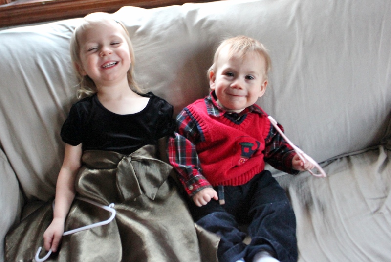 Yes, they’re holding hangers. It’s the only way I could get them to sit still!