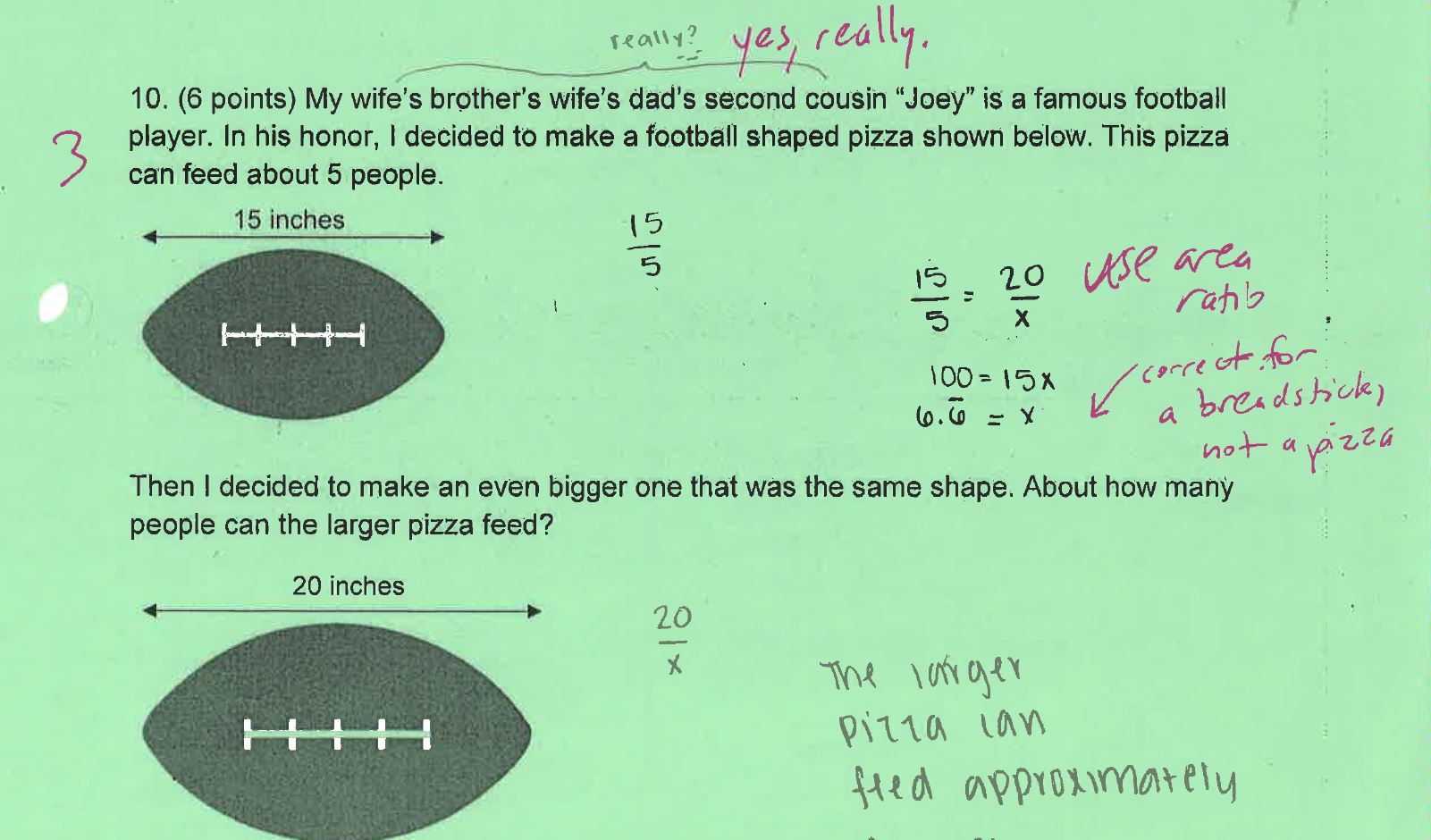 I’ve made it no secret that I’m related to Joe Flacco. We haven’t managed to turn this close familial connection into season tickets for the Ravens yet (not that I really want them) but Nik did manage to work it into his geometry test last week. Would you have been able to get the question correct?