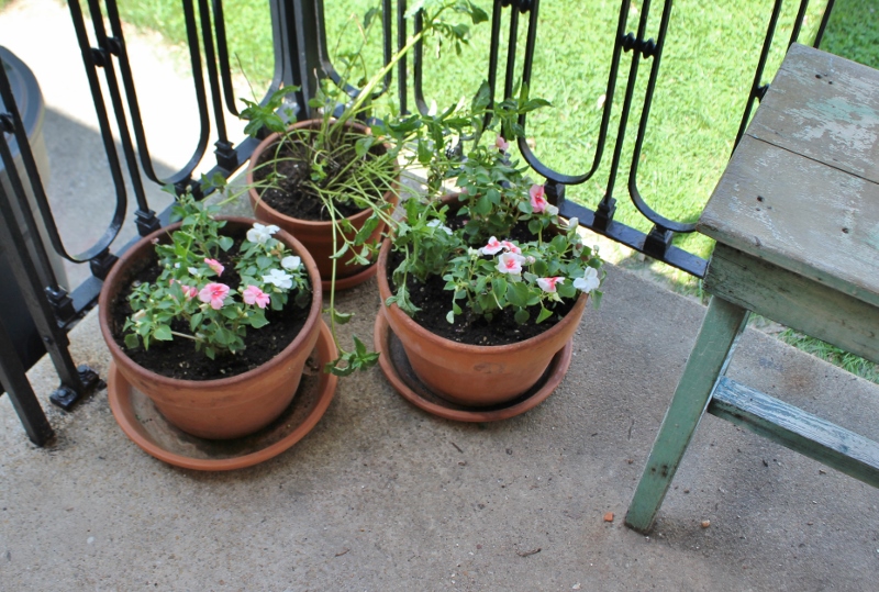 And in other news, I did manage to get the front porch planted, swept, and ready for guests, just 90 minutes before the party started. And guess what? Only one person went out there, for only about one minute. Oh well! Our porch looks lovely now and we’re ready for summer! 🙂