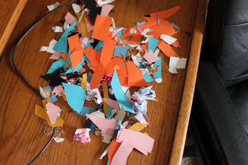 Ellie’s current obsession: making “salad”, i.e. cutting hundreds of tiny bits of fabric and paper. She spent close to two hours every day this week working on this project while Mark was sleeping. I LOVE it when she makes salad!