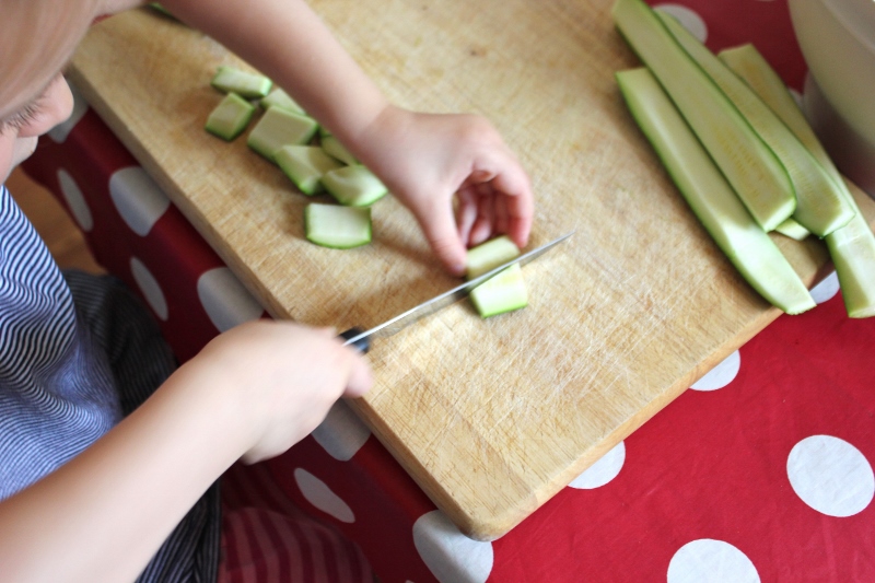 For Ellie, using a real knife to cut real food for our real meals is a way for her to feel useful and needed in our family.  It’s also a pretty great way to feel powerful and in control, something that’s usually in short supply when you’re young.  For me, Ellie’s knife adventures are good “letting go” practice.  I have to give up my perfectionist tendencies towards perfectly uniform vegetable pieces.  I also have to practice trusting her, in this case that she’s not going to slice off her fingers.  I figure it’s good practice for all the things that we are eventually going to have to let her do (like drive a car, gasp, faint, fall over.) As a bonus, I don’t have to all the dinner prep by myself anymore! (Plus she’s busy so she’s not pestering her brother while I’m trying to make dinner.)