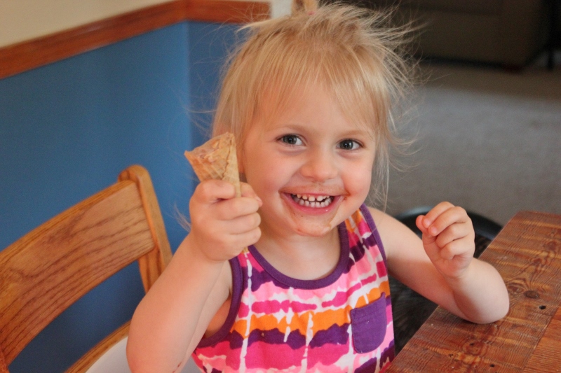 She really loves chocolate ice cream! 🙂