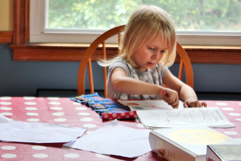 intently absorbed in an art project, her favorite thing to do, August 2014