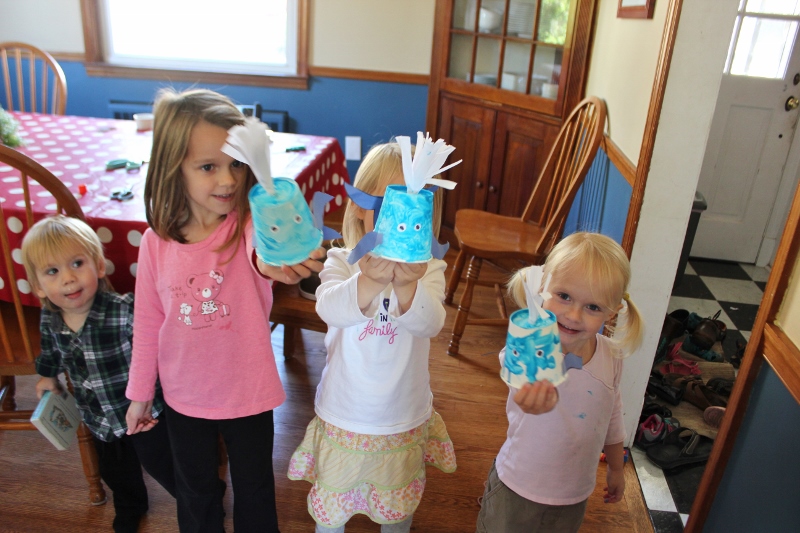 We also made blue whales out of cups, complete with blow hole spray.