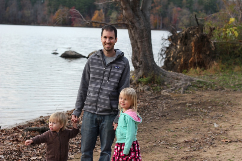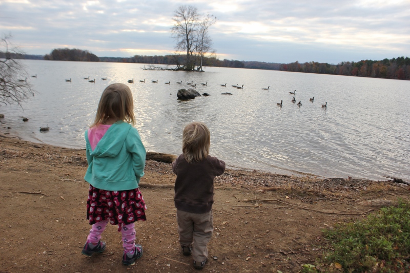 You can’t just say, “NO!” right? Eespecially now that Ellie is old enough to understand that something is going on, that other kids are doing something fun and she’s not, we knew we needed to have a family tradition for October 31st. Last year, we went out to eat on a whim and this year, we decided to just do that every year. We super-rarely eat out as a family just by ourselves (maybe 2-3 times a year?), so it’s a big treat, especially FOR ME!!!, to get to eat in a restaurant (no cooking! no dishes!). We decided to combine it with a trip to Loch Raven Reservoir to see the geese, and there you have it! A fun family tradition!