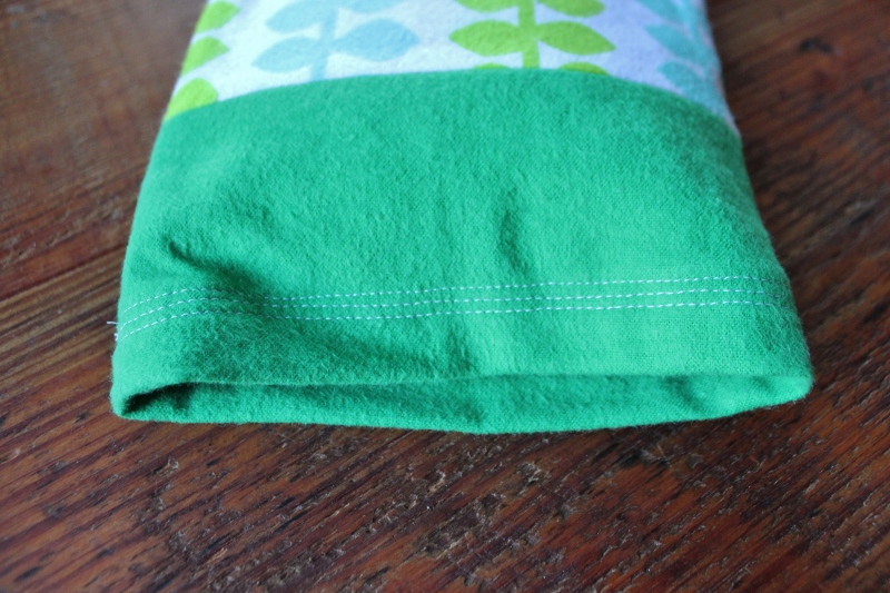 In November, I sewed this corn sack as a thank to a neighbor friend of ours who oh so generously gave us four blueberry bushes and four pots of rhubarb. I didn’t know her tastes in fabric but figured that you can’t go wrong with green and leaves for a gardener, right?