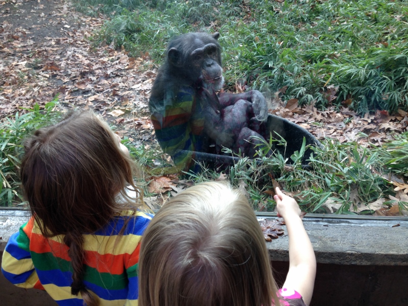 Ellie with her friend L, checking out the chimps