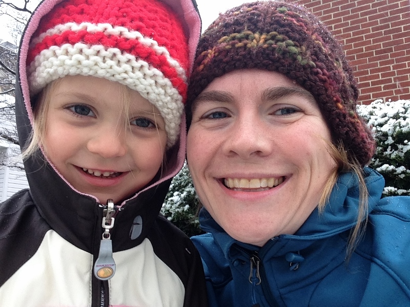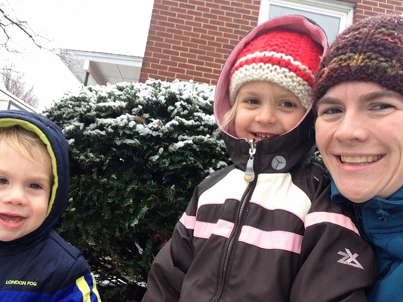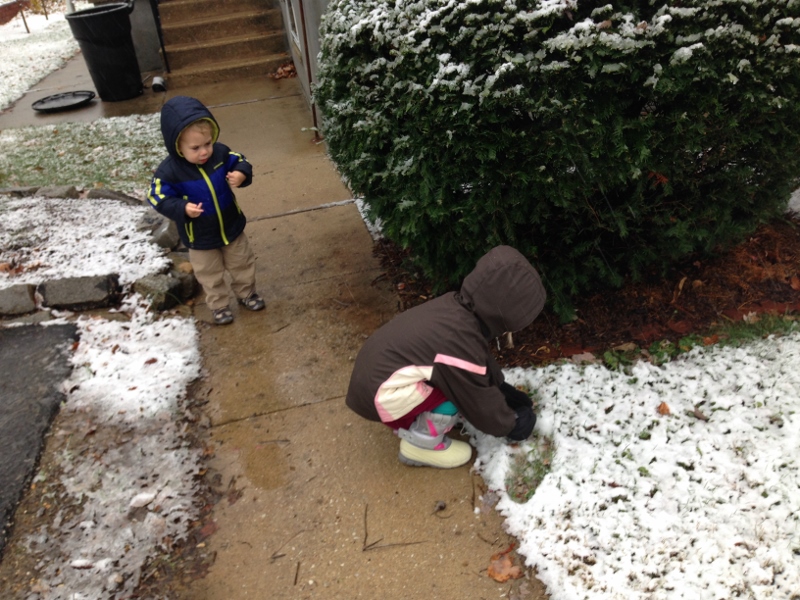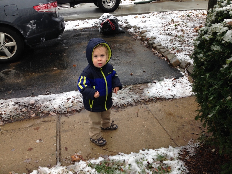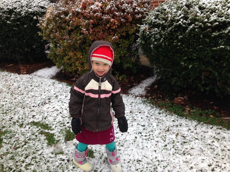 Today, it’s down near freezing with snow/rain coming down. Ellie begged to go out to play so even though it’s pretty nasty out there, we ventured out for a few minutes. Our snowballs were really more like snow/leaf balls but it was fun to be outside.