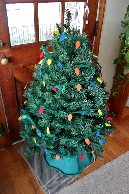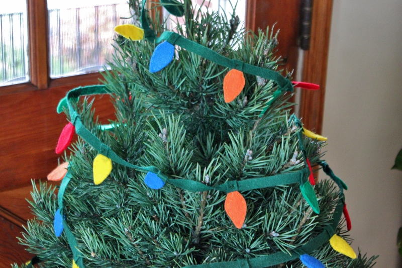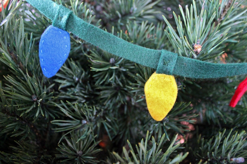 Continuing my “Christmas ornament” theme from the past couple years of presents for my siblings, this year I sewed everyone a string of retro Christmas tree lights. I even managed to sew a string for our tree too!