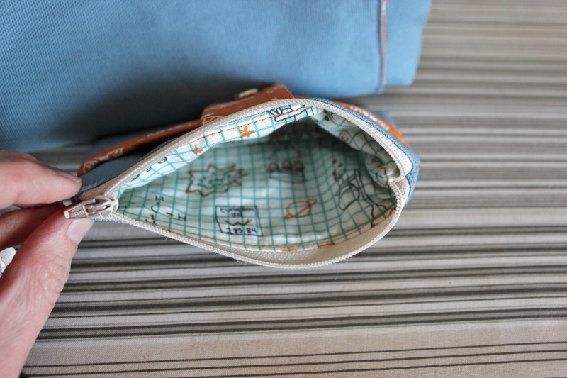 010 (800x534)I added this from the selvage to the bottom of the non-pocketed side. Cute, huh? 🙂