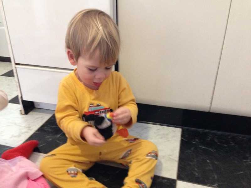 This morning, there was a whole lot of inter-class nursing going on. At our house, evidently, puffins are mammals. And don’t try to tell Ellie they’re not.