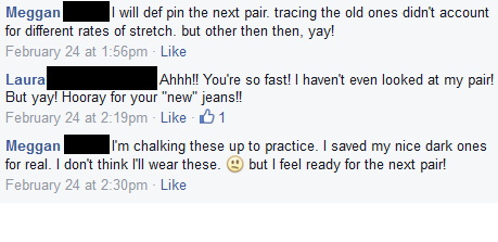 Your jeans look great! I just did this a few weeks ago and blogged about it as well (http://sewlindsaysew.com/2015/01/26/the-skinny-on-alterations). I really enjoyed being able to control the amount of “skinny” this way — store-bought skinny jeans are way too claustrophobic!