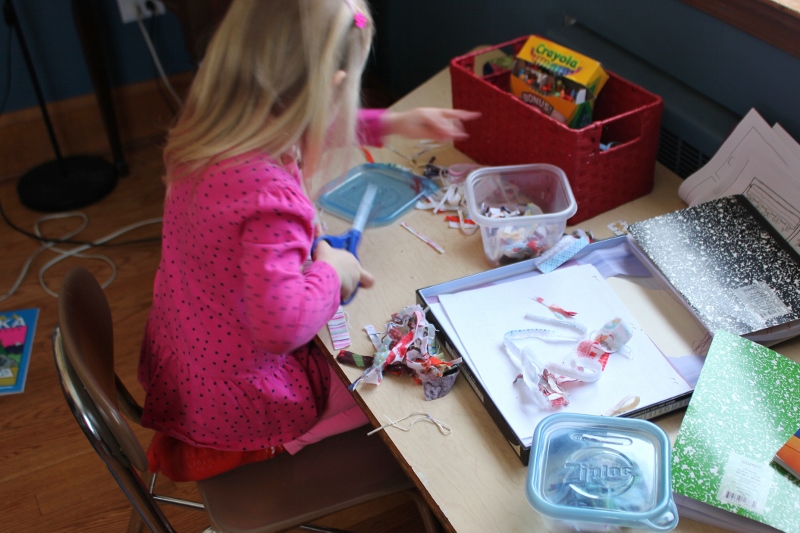 Ellie was in heaven, having so many scraps to cut up. She was making “salad” while Mark was, somehow, miraculously, occupying himself.