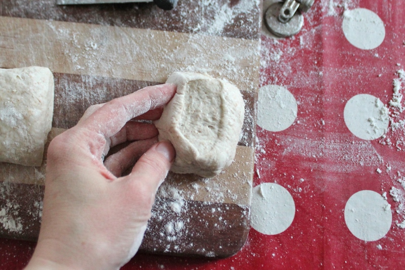 working with one quarter of the dough at a time, cut into 7-8 rolls