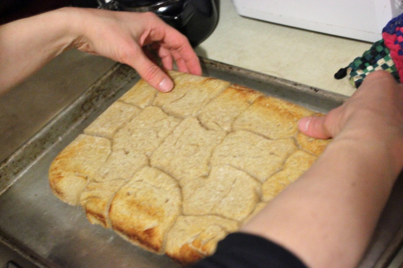 Using forks – the dough is just barely set in between the rolls (and in places, still raw).