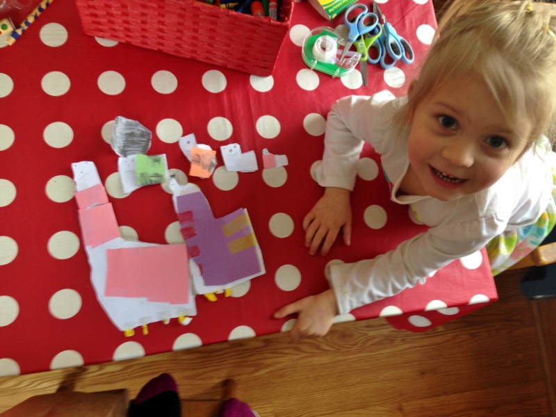 IMG_0595 (800x600)“The giraffes have necklaces on.  The Baba giraffe has a necklace.  The one with the purple has a dress on and that’s a mama.  The other ones are little sisters.” (Ellie describing one example of ultra-cute giraffes that she was obsessed with making a few weeks ago.).