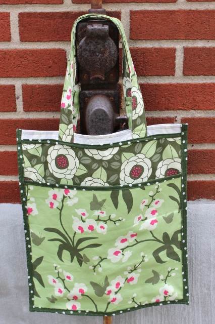This was a fun, fairly quick, and relatively easy bag to sew. Bias tape can be a bit fiddly so it probably would be a bit frustrating for a beginning bias tape use. Other than that, it was easy and quick because it doesn’t have a lining. I’m scheming about making one for myself now! It might be my treat to myself for finishing up those dining room shades! 🙂