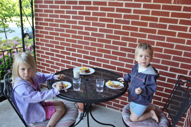 random cuteness – breakfast on our porch a couple weeks ago