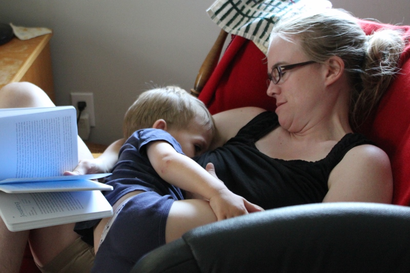 Nursing is often the only quiet time that Mark and I spend together. He’d much rather be wrestling me to the ground or playing with his sister most of the time. So I treasure the few quiet minutes I get with him. He still nurses 3-4 times during the day (plus a couple times during the night) and I’m glad for the continued close connection with him. It’s my best parenting tool for calming tantrums, soothing fears and hurts, and welcoming bedtime.