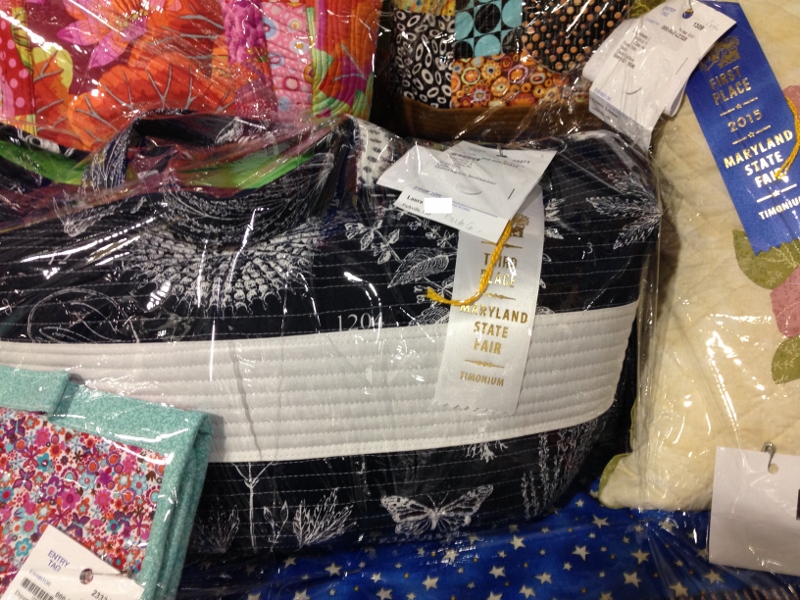 IMG_1223 - Copy (800x600)I have to confess to being justifiably but perhaps a bit too annoyed with the fact that they displayed my tote bag with the back side out!  That patchwork panel with the cool bugs and the pinks/greens got buried! 😦  It just looked like a boring easy tote bag that definitely didn’t deserve a ribbon.