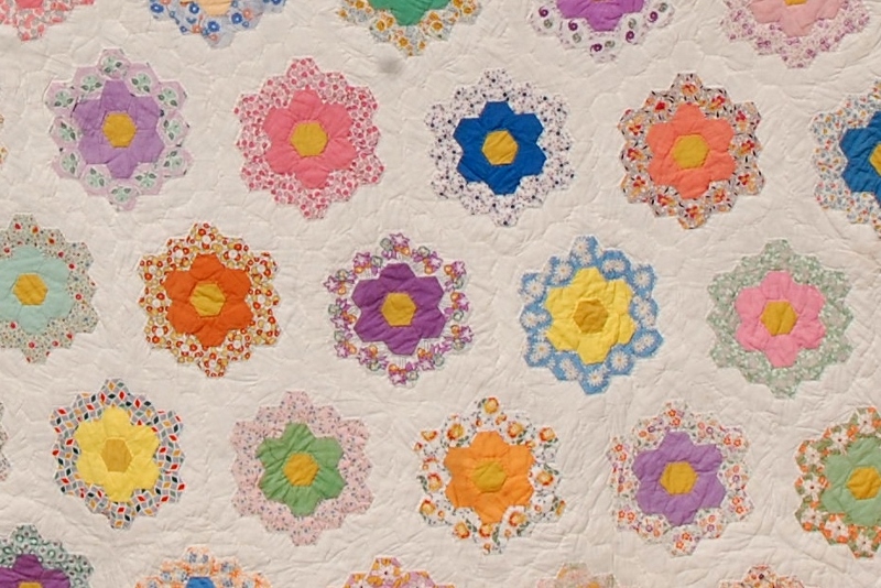 1. Thanks for linking to my EPP hexagon tutorials. That heirloom quilt is absolutely wonderful–such a treasure!